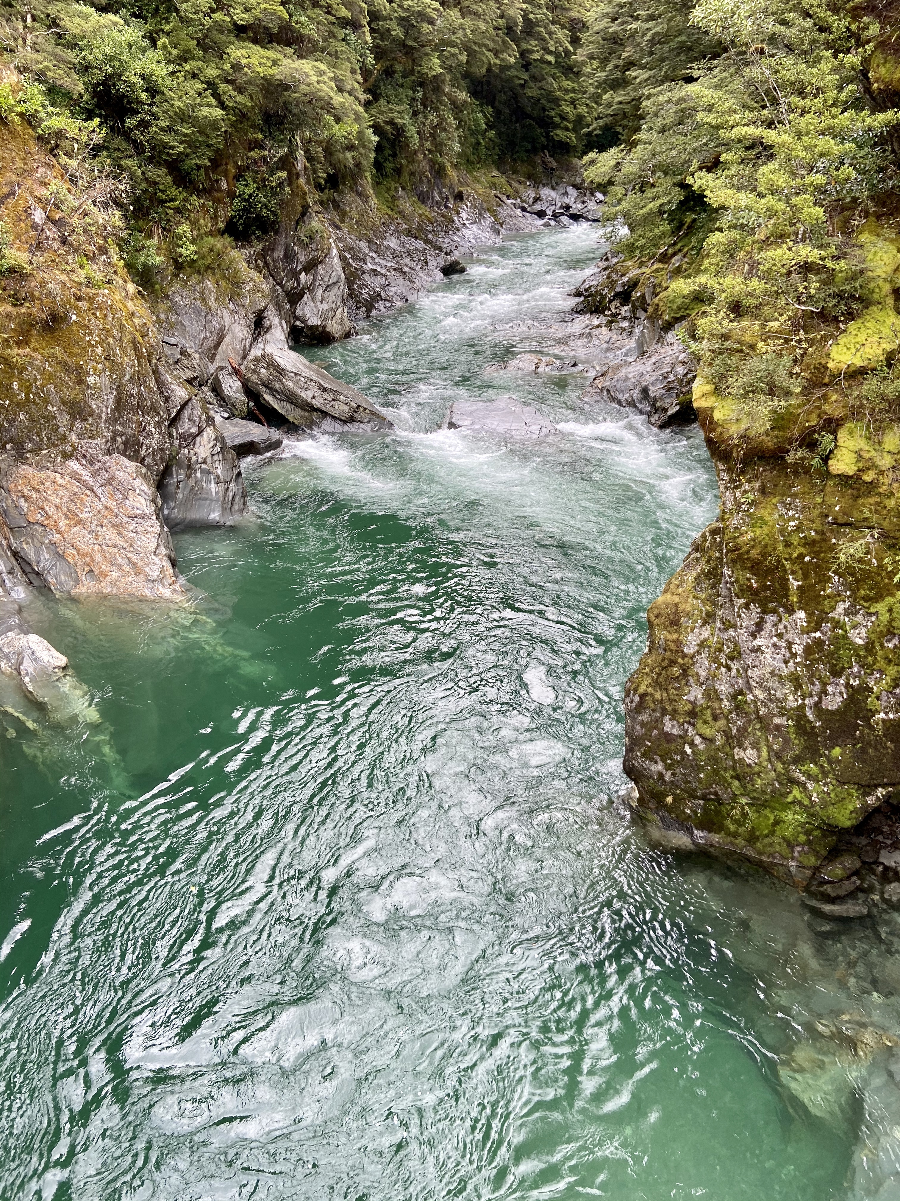 Two weeks in and all sunshine and smiles so far for these two plucky travelers. But the west coast of New Zealand is famously the wettest part of the country and it lives up to its soggy reputation. We spent much of this three day stretch driving and imagining what the views would look like on a clearer day. We made frequent stops, either for coffee to warm us up or to stretch our legs on short hikes to impressive landmarks, like the Pancake Rocks or the Hokitika Gorge